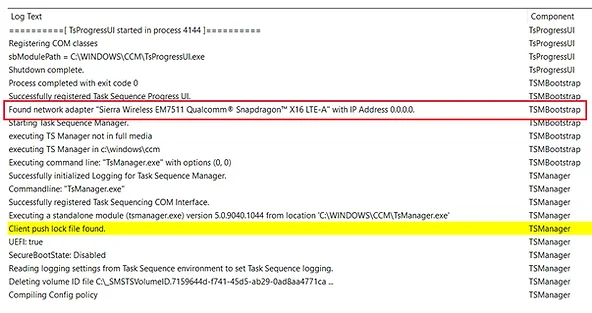 You can view smsts.log using CMTrace, which is Microsoft’s preferred log viewer for SCCM/ConfigMgr. CMTrace formats logs in real time, highlights errors and warnings, and makes troubleshooting much easier compared to Notepad.